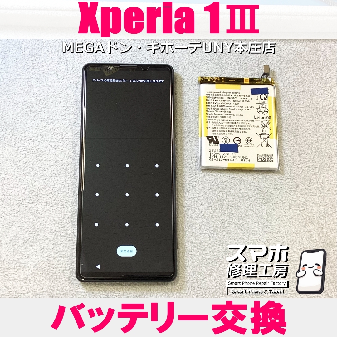 【予約なしでも即日対応から👍】 Xperia1Ⅲの電池の減りが早い😖 ソニーのバッテリー交換ならスマホ修理工房MEGAドン・キホーテUNY本庄店にお持ち込みください👍 iPhoneは13・14・15シリーズや #iPhoneSE 各世代の修理対応、そして #iPhone16 シリーズも修理対応OK! pic.x.com/Q9hPMFJyQd