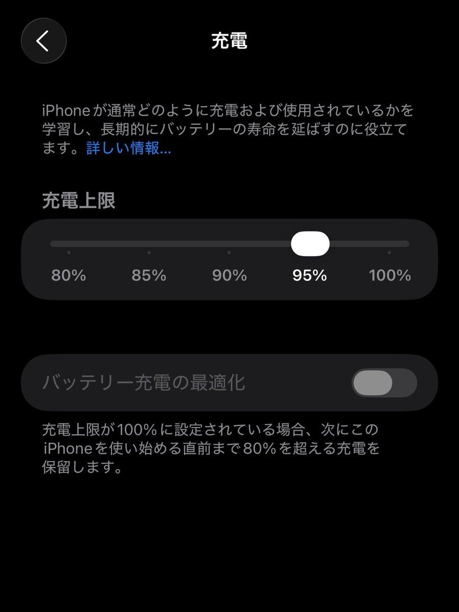 バッテリーの劣化を抑える効果が実際にあるのか?無いのか?は知らんけど、一旦乗っかって充電上限を95%に設定してる。 だがしかし、稀にその設定を貫通して100%になってる時があるw #iOS26 #不具合 #バグ #Apple #iPhone16ProMax #iPhoneXSMax #iPhone #iOS #iOS2601 #iOS1871 pic.x.com/MBOWGvhyE8
