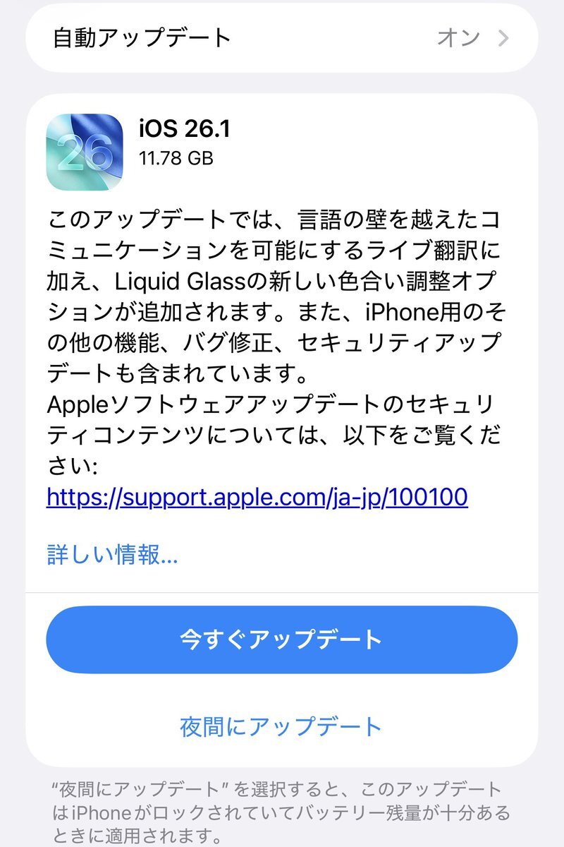 明日02時過ぎにiOS26.1来るっぽい?来ないっぽい? 諸々安定化はよ。 #iOS261 #Apple #iPhone16ProMax #iPhoneXSMax #iPhone #iOS #iOS2601 #iOS1871