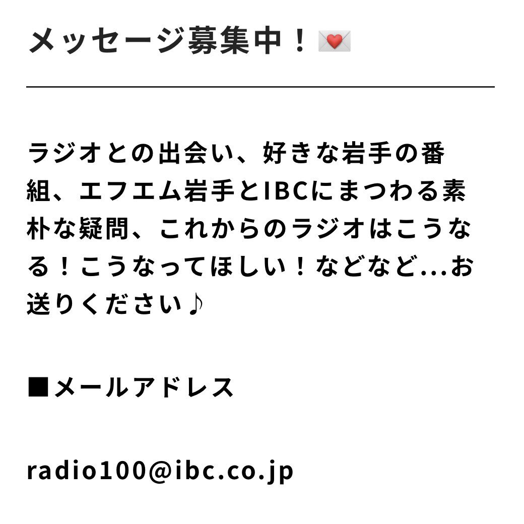 24日(月・祝)は公開生放送📻 IBC奥村アナとお届けする2時台は あなたからのお便りが超大事😆 ラジオの「今」と「これから」を一緒に語りましょ✨ ヤンベニーの皆さま、メール待ってる💕 ↓メッセージこちらから💌 ibc.co.jp/radio/radio100/