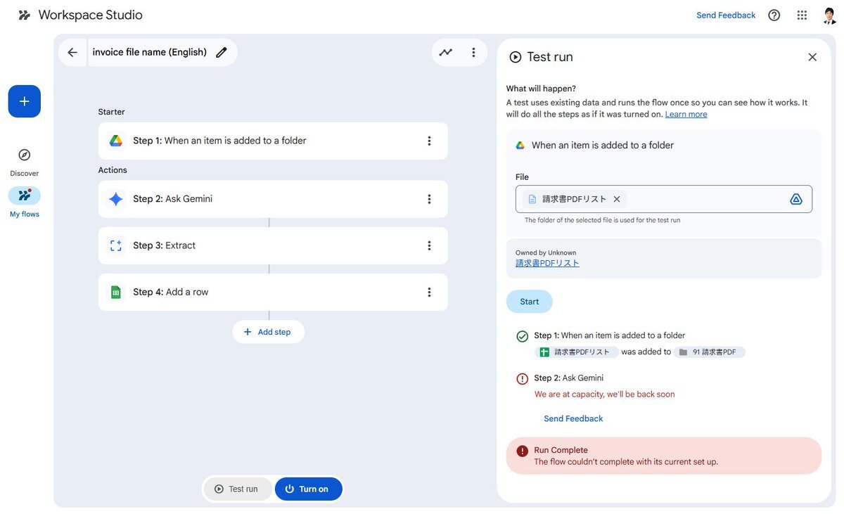 昨晩から私のGoogle WorkspaceのGemini、調子悪いです…。 今朝は直っているかと期待しましたが、応答が返ってきません。 Google Workspace Studioもキャパいっぱいでエラーになります。 #IEM pic.x.com/oFFN13oj5X