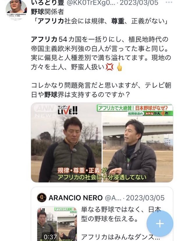 そういえば日本の野球界や野球関係者ってさ、何かと"アフリカ"を都合よく利用しようとするよな 野球関係者って、普通に人種差別してるんだよな。国内だけじゃなく他国に対しても傲慢なんだよ日本の野球界ってさ 本当最低な界隈 #野球ハラスメント #大谷ハラスメント #ヤキュハラ #野球ゴリ押し x.com/kk0trexg0rcxg0…