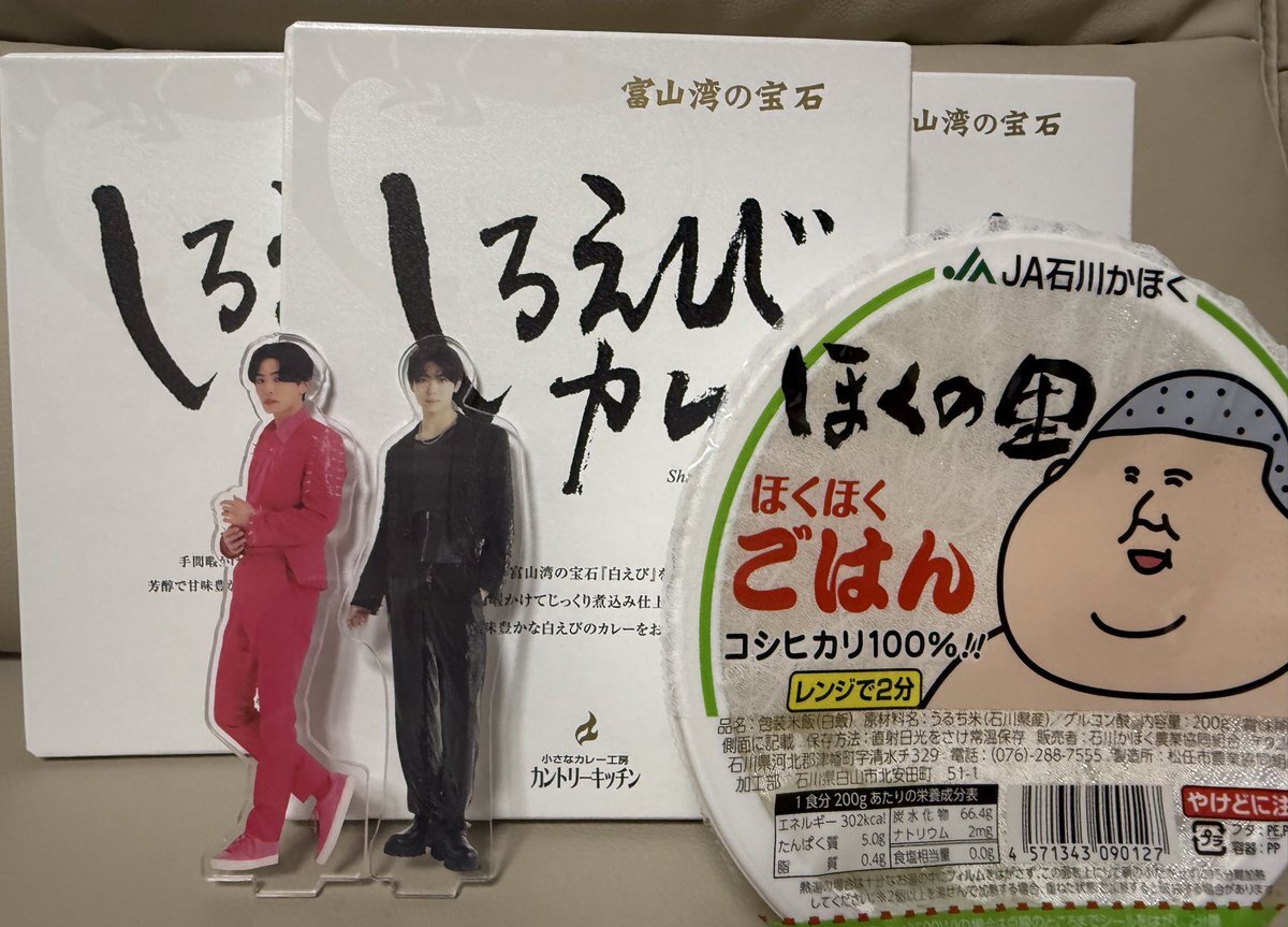 昨日しろえびカレー🦐🍛をゲット❤️ 食べられるのは先になりそうだけど楽しみ❤️(気になるコシヒカリも一緒にゲット笑) #IMP_Tube #IMP. #影山拓也 pic.x.com/7yGyptVqWl