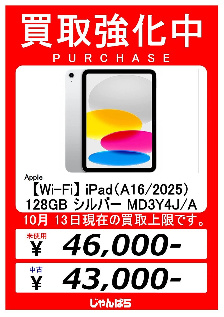 じゃんぱら池袋東口店 iPad買取強化中!! 最新の買取価格はこちら(•◡•ƪ) buy.janpara.co.jp/buy/search?out… 東池袋1-39-6 寄池ビル1F 03-5992-7075 営業時間:11:30-20:00 年中無休 #janpara #じゃんぱら #買取 #池袋 #ikebukuro #池袋買取 #Apple #iPad #iPadmini #iPadAir #iPadPro #iPad買取 pic.x.com/kSdH2CMH77