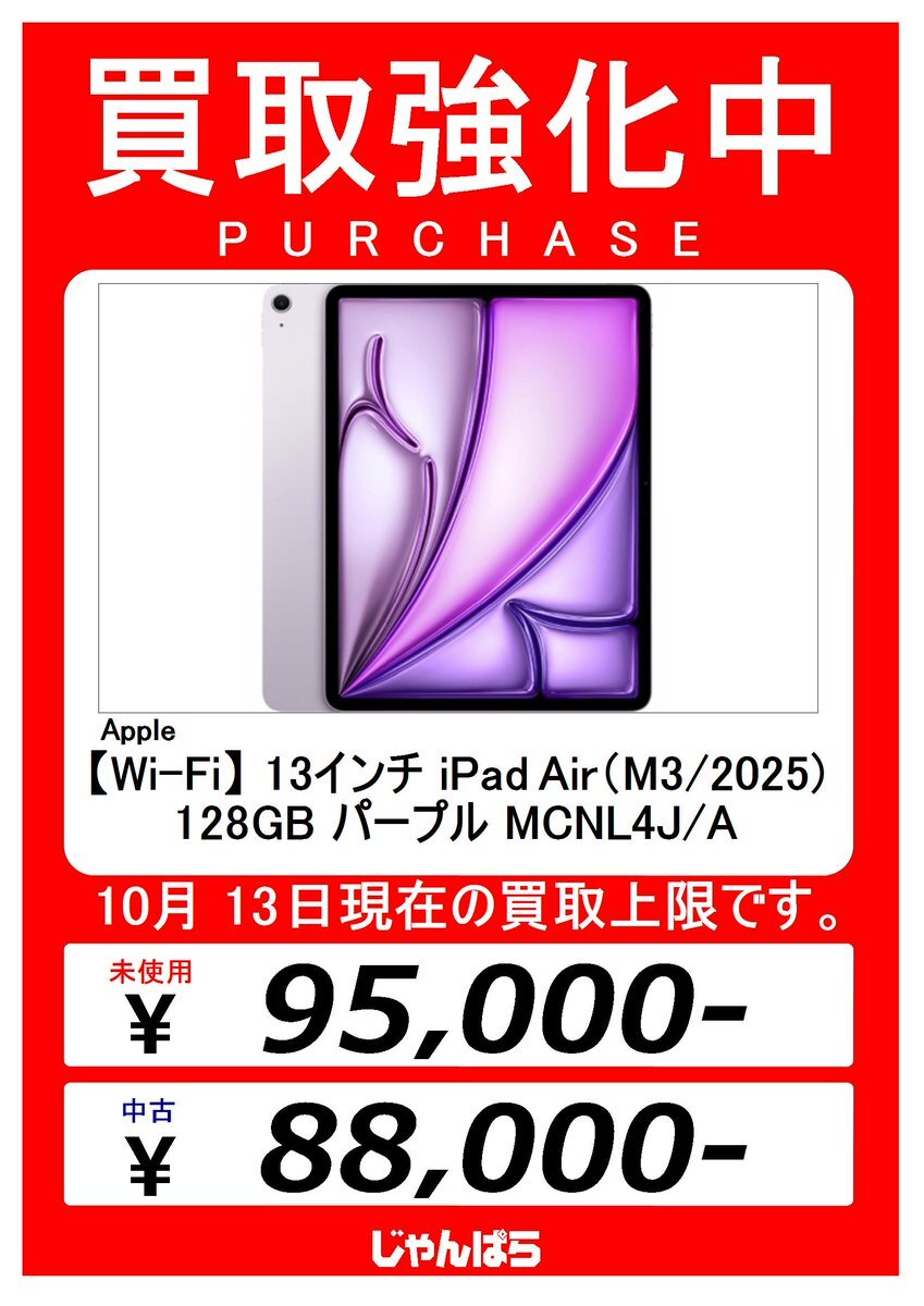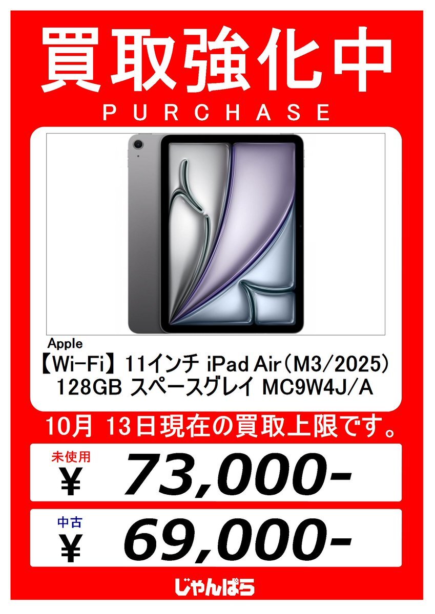 ★未開封★ Apple 【Wi-Fi】 11インチ iPad Air(M3/2025) 256GB スターライト MCA44J/A #janpara #じゃんぱら #池袋 #池袋東口 #ikebukuro #免税 #Taxfree #Apple #iPad #iPadAir #iPadAirM3 #iPadAir2025 #中古iPad janpara.co.jp/sale/search/de…