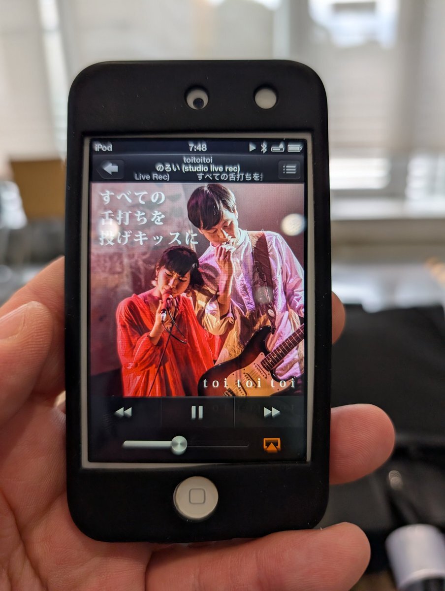 今日も職場が開いてなかった😢 待ち。 シャッフルで曲を聴いていて 今はtoitoitoi テンション上がる。 頑張ろう。 #朱音 #のろい #すべての舌打ちを投げキッスに #toitoitoi #iPod pic.x.com/i2jX8C32x7