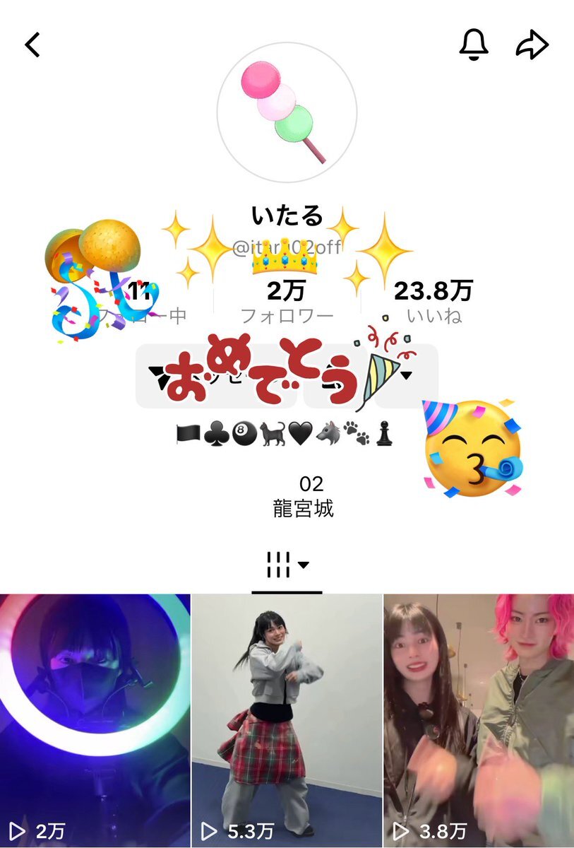 いたるをチェックしよう! #TikTok tiktok.com/@itaru02off?_r… #龍宮城 #ITARU ㊗️ITARUさん、TikTok2万フォロワーおめでとうございます!!!🎊✨ pic.x.com/bsEgPWVDrs