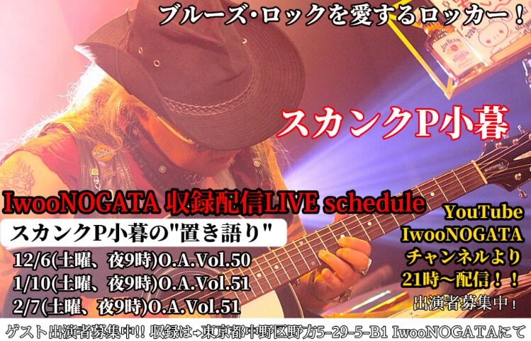 スカンクP小暮さんの収録ライブ配信情報🦨 今後のIwooNOGATA配信での出演はこちら💁🏻 要チェック✍️ @sukannku100
