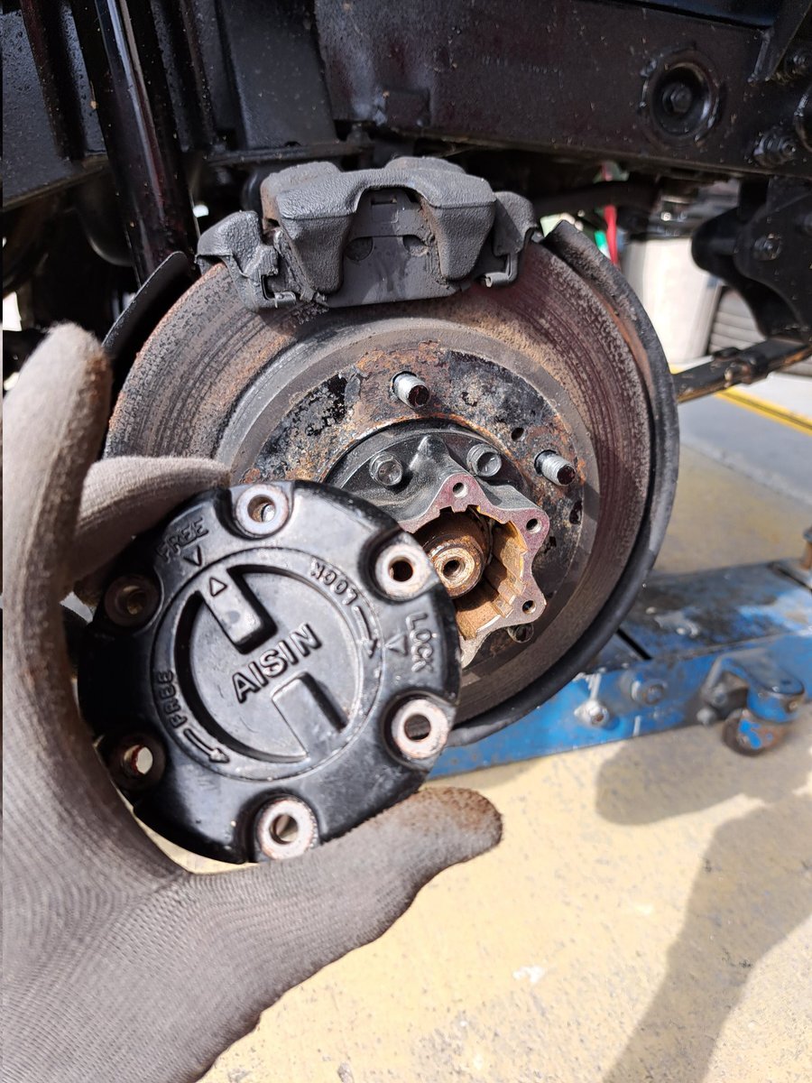 Jimnyフロント駆動せんかったから ばらしたら中サビサビ、反対側固着分解してたから昼の一時間でわからせた😢 左右ばらして清掃して錆び取ってグリスアップ、反対は歯車とスプリング分解されてたから点溶接して固定グリスアップ組み付け 昨日試乗行ったら登れんかったとこ登れたwww #ja11 pic.x.com/eaoYyZJXVZ