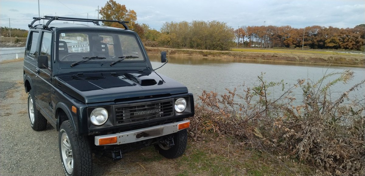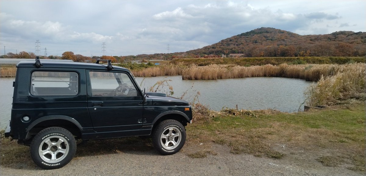 路上復帰したジムニーと自分 長かった 今日の距離乗ったのは初めてやったけど、ガタガタぴょこぴょこフレームとボディが一部つながって無いような音がしたり、まぁ面白い ちょっと旧ミニを思い出す乗り心地 ちょっと不安あったけど、5分で慣れた 当然池では竿を振ったけど、異常なしでした #JA11 pic.x.com/G3BEb6WOpk
