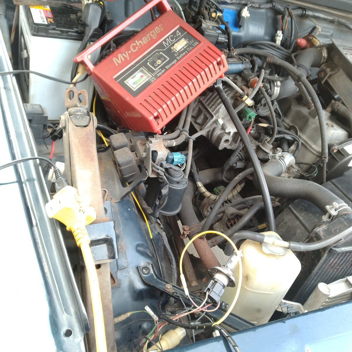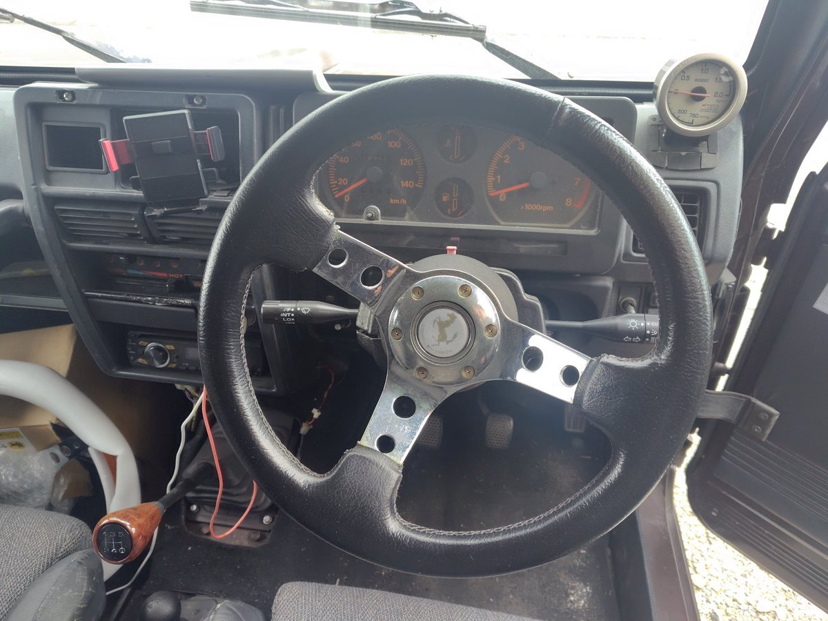 数日前からジムニー遊びが始まった 現物見ずに買って、ロービーム不点とシフトレバーぐにゃぐにゃ 錆穴だらけで地面が見えるし、手違いで名変されてないとか色々とオモロすぎるおもちゃで最高 たぶん問題はそれだけで、スズキにずっと点検していた車両っぽいのは◯ #JA11 pic.x.com/zhybNJtiFj