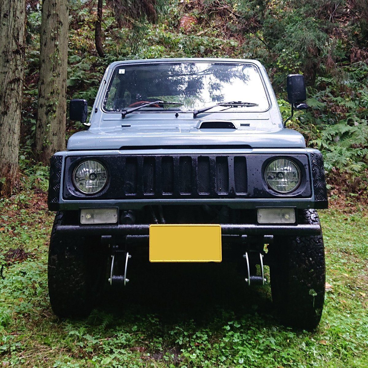 JA11のフロントナンバープレートの位置上にあげた方がスマートに見えるかなぁ…? 明日ホームセンター行って適当なステー買って位置変更してみようかな。 現在← →変更後(画像編集) #Jimny #JA11 pic.x.com/2xR2W94rQy