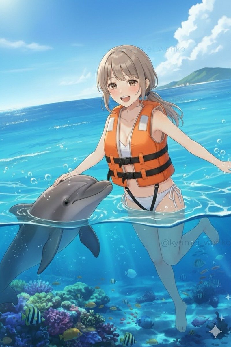 おはようございます☀️ 今日は以前に投稿した続きです〜✨ イルカって、独特な肌触りしてるんだ〜🐬💙 嶋羽エナ日記003 #嶋羽エナ日記 #AIイラスト #AIart #life #jacket pic.x.com/m7zpPu6rQQ