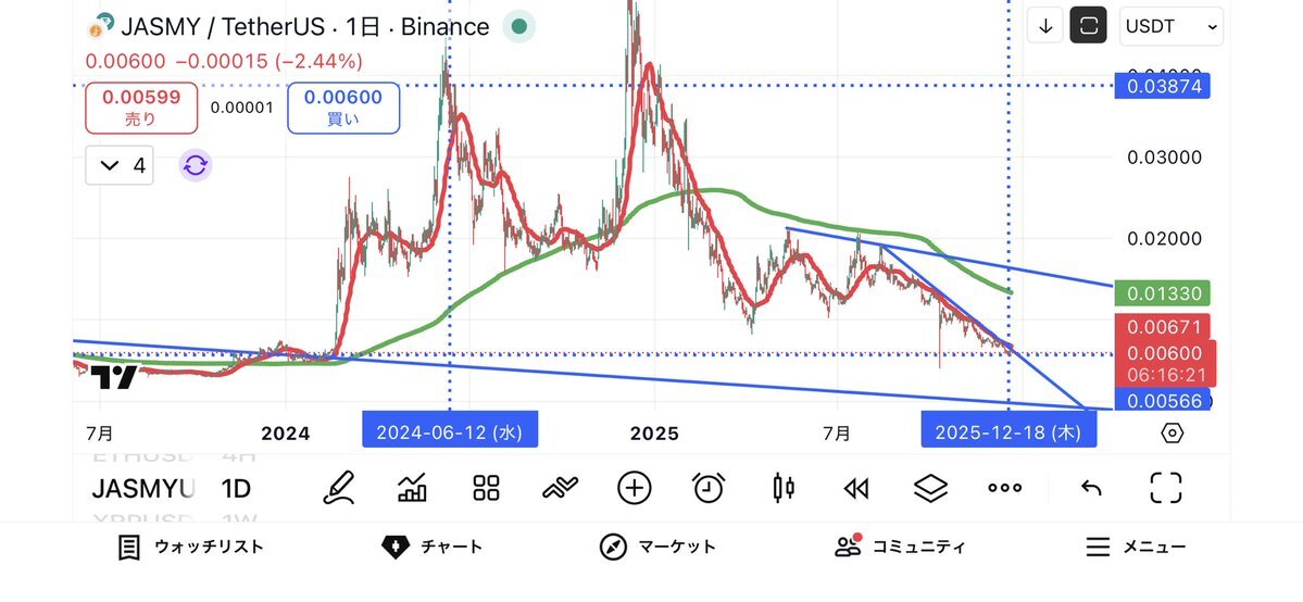 #JASMY 要所の反省をしてみる。 結局のところ2025年12月18日まで実需ベースでのキャンペーンゼロ。ウォレットローンチやステーキング無し。 分かっているのはプロジェクトに必要な税制や法整備施行まで期待感だけの値動きによるチャート形成。 pic.x.com/KYABKMxRwC x.com/level087/statu…
