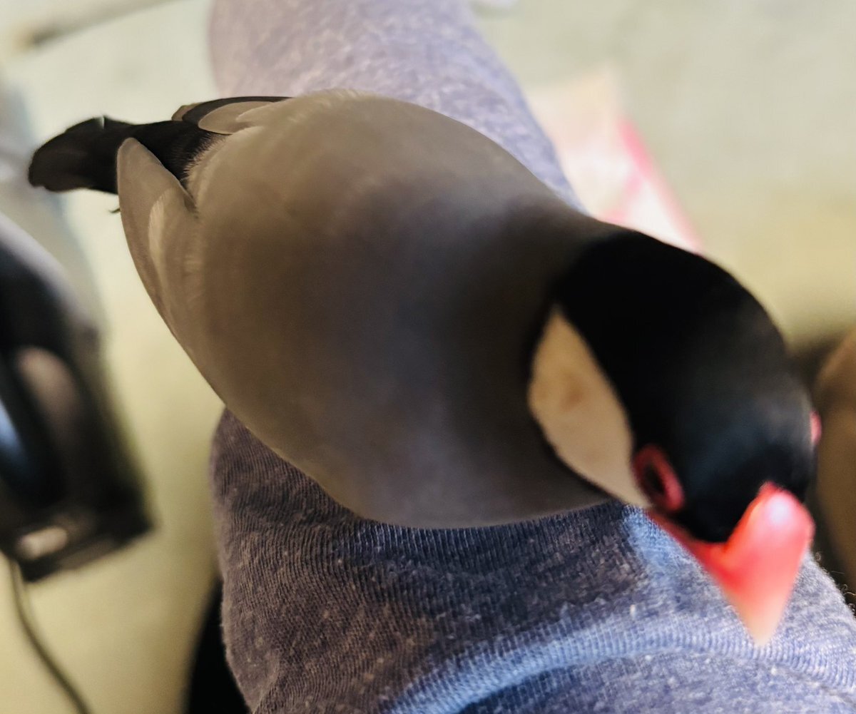 連日寒いですね🥶いつもはひざ掛けの中で大人しくしてるのに、人肌が恋しいのか最近やたら甘えん坊に 肩に乗って羽根をパタッと鳴らして「あ、コレは寝る時に羽整える音!」とわかり頬をチョンと当てたりしてました💨 信頼されてる証拠だよね😌…トコトコ登って来てピンボケに😂 #文鳥 #Javasparrow pic.x.com/d4W1hdKPIY