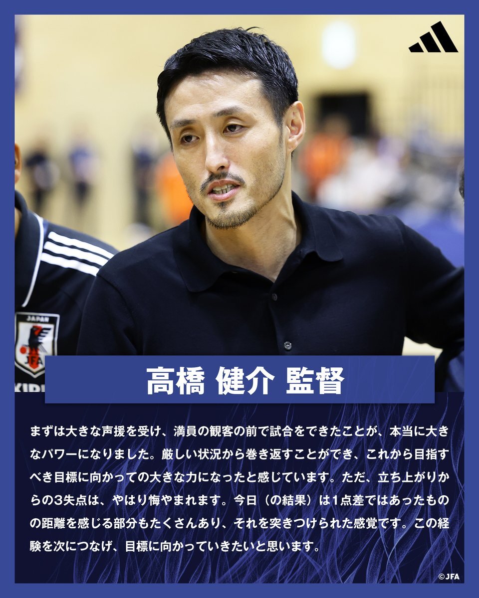🔹フットサル日本代表🔹 【2025.10.19 試合後コメント✍️】 #高橋健介 監督 #adidasFootball #夢への勇気を #フットサル日本代表 #jfa #daihyo #フットサル pic.x.com/JXGz8rjxjT