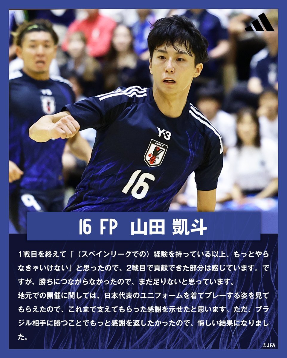 🔹フットサル日本代表🔹 【2025.10.19 試合後コメント✍️】 16 FP #山田凱斗(しながわシティ) #adidasFootball #夢への勇気を #フットサル日本代表 #jfa #daihyo #フットサル pic.x.com/KADZjQVzDE