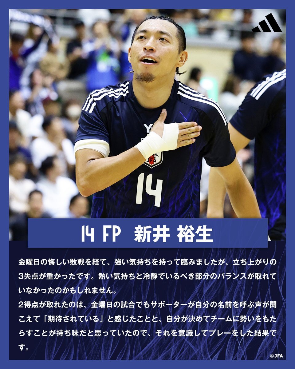 🔹フットサル日本代表🔹 【2025.10.19 試合後コメント✍️】 14 FP #新井裕生(しながわシティ) #adidasFootball #夢への勇気を #フットサル日本代表 #jfa #daihyo #フットサル pic.x.com/eQShTENfwr