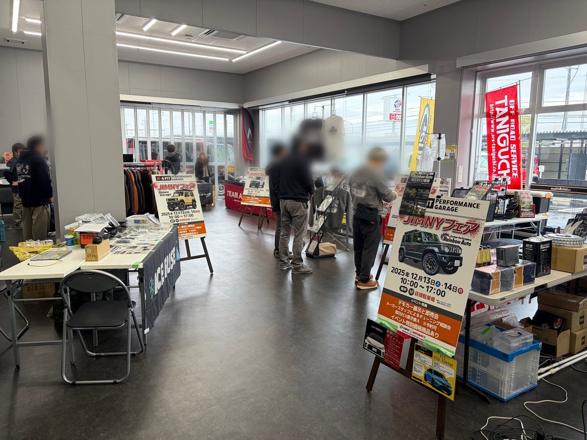 本日はジムニーフェア最終日です 天候の兼ね合いで店舗正面イベントホールの右側にてブース展示しております メーカーデモカーも展示していますので、ぜひご来店お待ちいたしております☝️ #ジムニー #JIMNY pic.x.com/rAHpo9bUSM