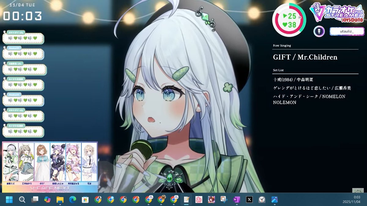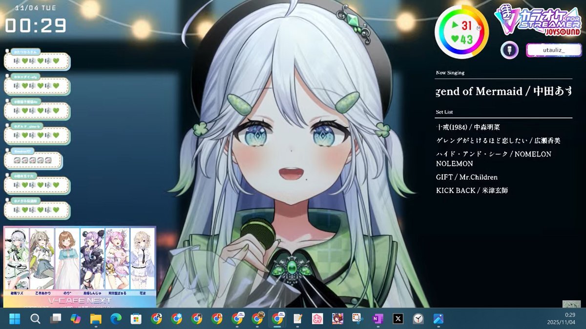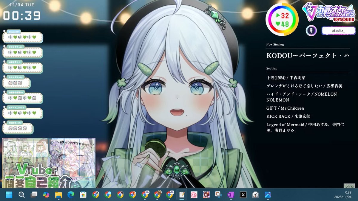 歌唄リズの同接30を目指す歌枠 配信中❗ 🖥youtu.be/hfFgU9jxH0E 4.GIFT / Mr.Children 5.KICK BACK / 米津玄師 6.Legend of Mermaid / 中田あすみ,寺門仁美,浅野まゆみ 弾幕:🎼💚🎼💚🎼💚 #歌唄リズ #歌枠 #JPOP #昭和歌謡 #アニソン pic.x.com/E8QNwg0CCa x.com/UtaU_Liz/statu…