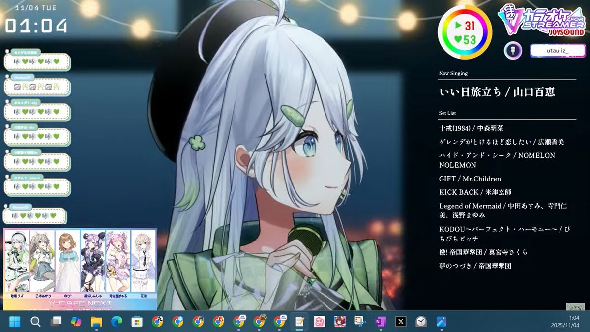 歌唄リズの同接30を目指す歌枠 ラスト❗ 🖥youtu.be/hfFgU9jxH0E 10.いい日旅立ち / 山口百恵 弾幕:🎼💚🎼💚🎼💚 #歌唄リズ #歌枠 #JPOP #昭和歌謡 #アニソン pic.x.com/Sw2CkzpqKo x.com/UtaU_Liz/statu…