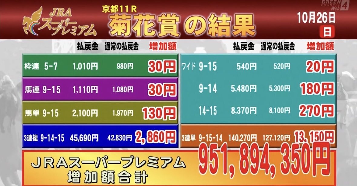 JRAスーパープレミアムの菊花賞の増加額!! 3連単おいしいですな😋 菊花賞を勝ったルメール騎手を祝福するレッドバンデの佐々木くん🐴✨ 君達も5着と頑張ったよ👍 #JRAスーパープレミアム #佐々木大輔 #レッドバンデ pic.x.com/0fdnpYpom0