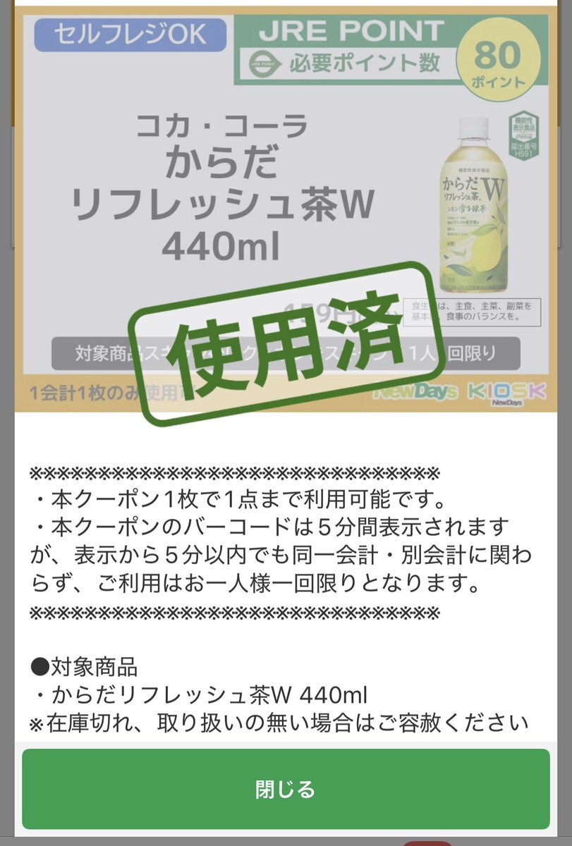 進化したキヨスクのnewdaysでお買い物! JRE POINT お試しクーポンで購入! からだリフレッシュ茶Wでレモンが香るさわやかな緑茶の味わいを堪能☺️ #キヨスク #newdays #JRE #ポイント #クーポン pic.x.com/bouK2UuwZo