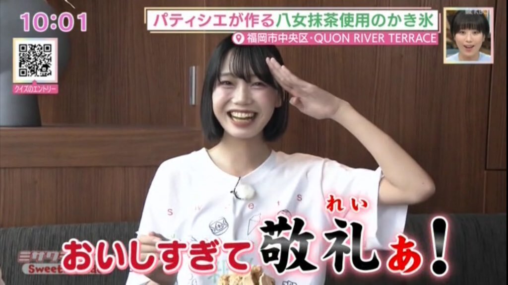 明日のアサデス。7ではミサワシュランスイーツガールのHKT48の梁瀬鈴雅ちゃんが生出演!宮崎のスイーツを紹介します。おいしかった時の決めゼリフ「敬礼ぁ」は名前の「れいあ」とかけたものですが、明日は何回飛び出すか、楽しみですね。 #梁瀬鈴雅 ちゃん #HKT48 #アサデス7 #KBC テレビ pic.x.com/H997So3M9K