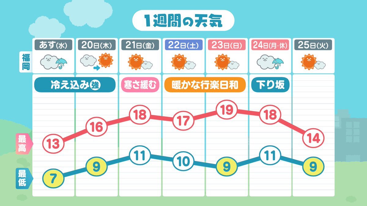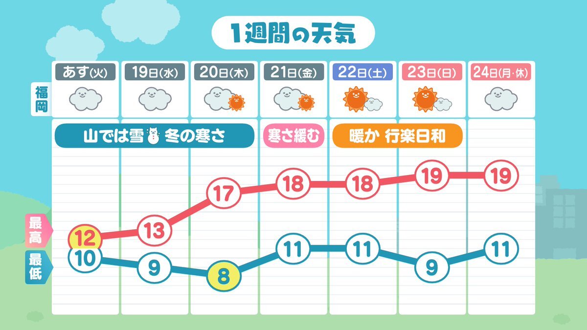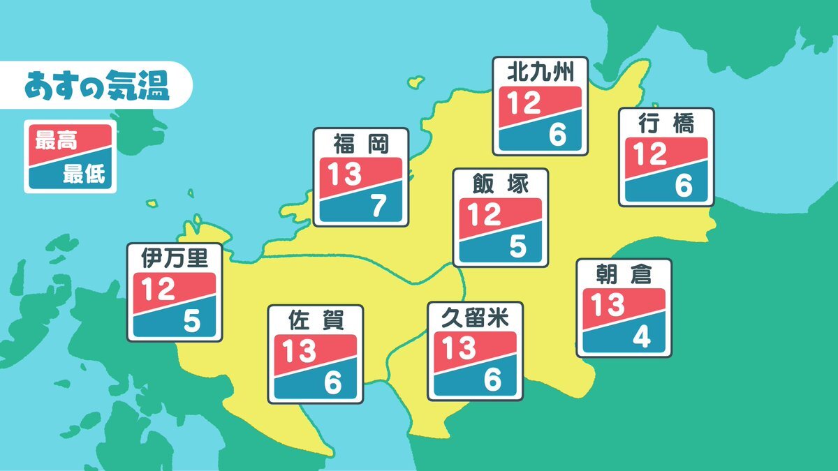 あす11/19 天気のポイント 👉朝は底冷え 冬物の装いで暖かく ・ #真冬並み 寒気の影響で、  最低気温は福岡で7℃、朝倉で4℃予想など  #今季一番 の冷え込みに🥶 #kbc #ぎゅっとkbc #ねこ天 #福岡 #佐賀 #天気予報 pic.x.com/q97TxD5bRK