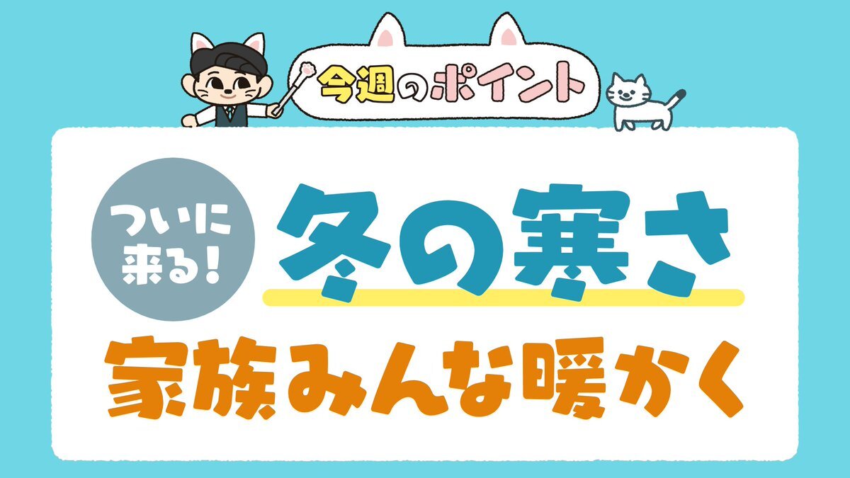 今週の天気のポイント 👉ついに来る!冬の寒さ 家族みんな暖かく ・あすから水曜にかけて、九州北部に  真冬並みの寒気が流れ込んでくる影響で  気温が急降下🥶  冬物の洋服や温かいお鍋などで暖かく過ごして🍲 #kbc #ぎゅっとkbc #ねこ天 #福岡 #佐賀 #天気予報 pic.x.com/rjY4eJEm6Y
