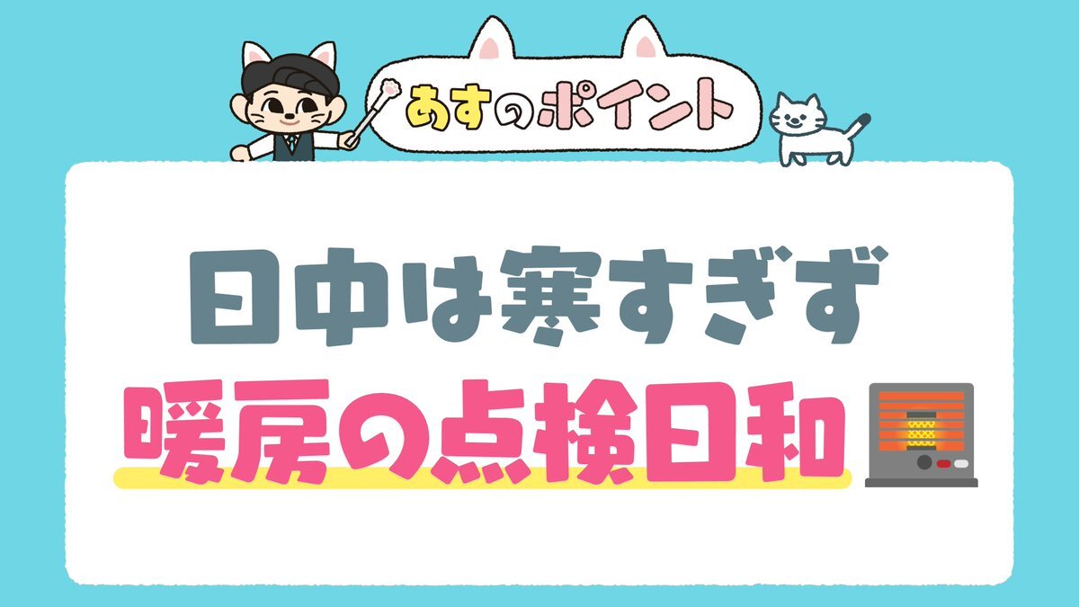 あす11/20 天気のポイント 👉朝までブルッと寒い 昼はホッと和らぐ ・火曜日からの冬の寒さはあすの朝まで!🧤  日差しの温もりが戻ってきそう🌤️ #kbc #ぎゅっとkbc #ねこ天 #福岡 #佐賀 #天気予報 #ストーブ pic.x.com/GBVTzxYmvm