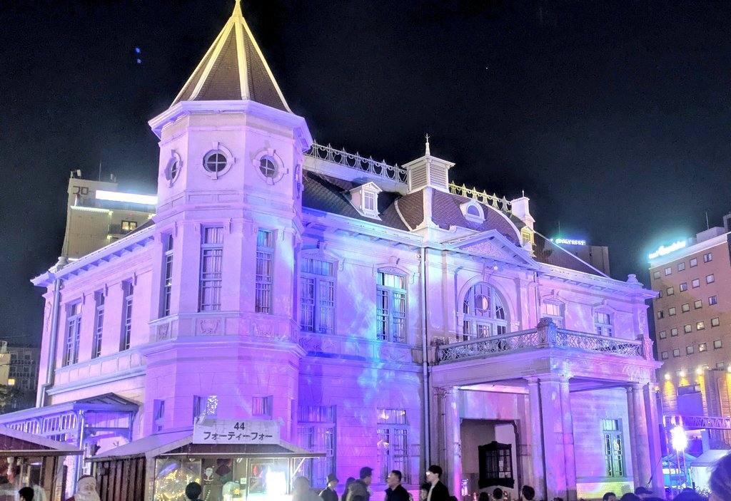 貴賓館前のクリスマスアドベント🎄✨️ プロジェクションマッピングやってます 今夜のMCはみすみんだよ☺️ #クリスマスアドベント #FESTAdeSANTA #KBC #三角英恵 pic.x.com/Fvt4gus4QX
