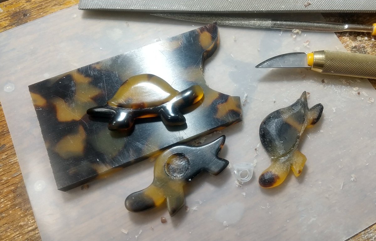 アセチロイドというべっ甲のような素材から削り出し、磨いて形を整えたヘアゴムも作りました! #KDS pic.x.com/GpLfB8M628
