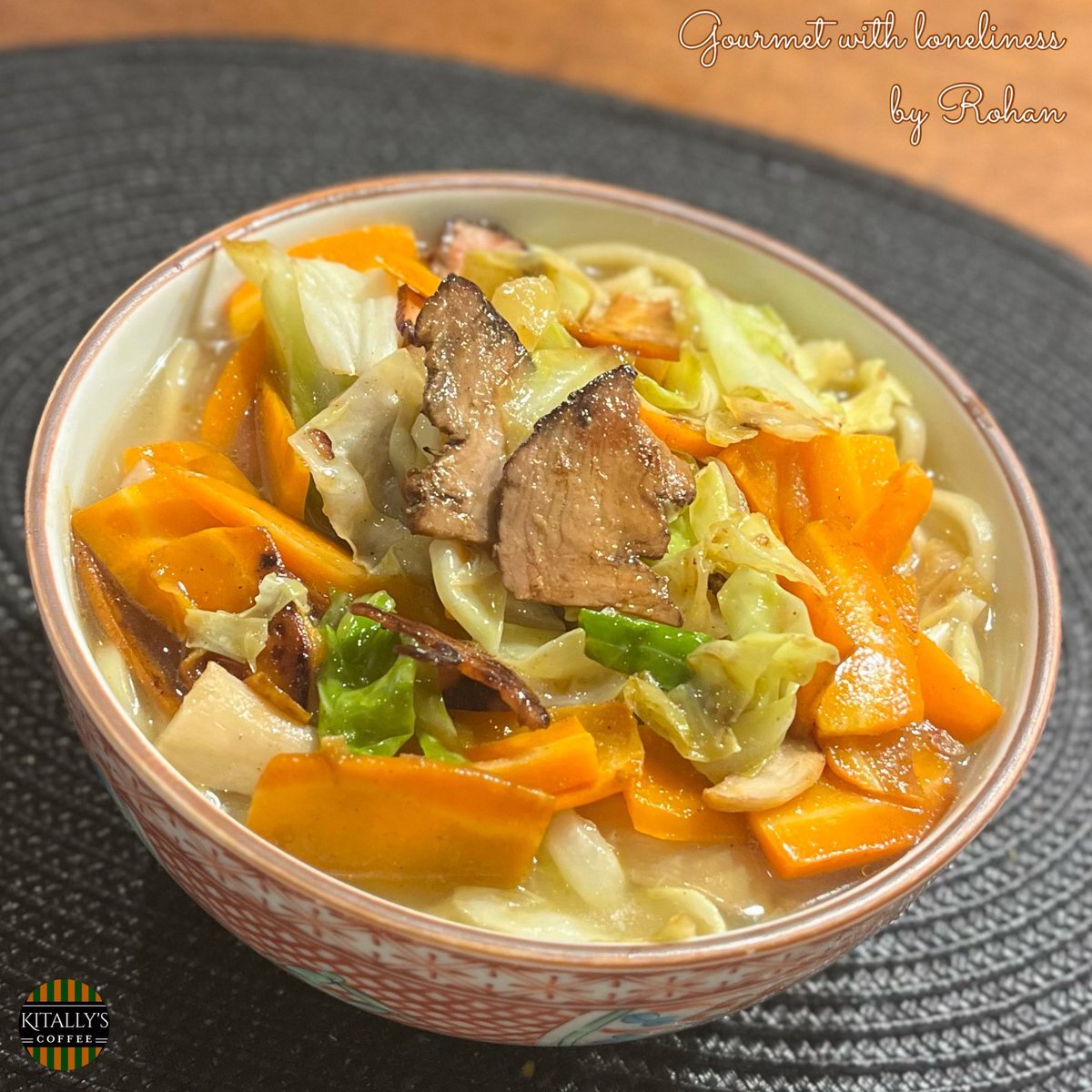 孤独にグルメ(Kitally’s)土曜日の晩ごはんはちゃんぽん。日清の麺の達人の麺とミヤジマのちゃんぽんスープにキャベツ・にんじん・エリンギ・ベーコンを炒めてのせる。野菜たっぷりヘルスィに、いと旨し。 #kitallys #路麺 #ちゃんぽん #麺の達人 #日清食品 #ミヤジマのちゃんぽんスープ #宮島醤油 pic.x.com/8770BnyQg2