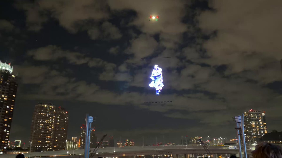 キズナアイちゃんへ こんな風に空中に投影ができるのなら、昨日の配信で話してたMVで描かれてた渋谷ライブも実現可能な日は近いかも!? #KizunaAI x.com/bboypopeye/sta…