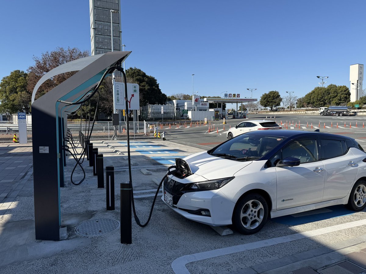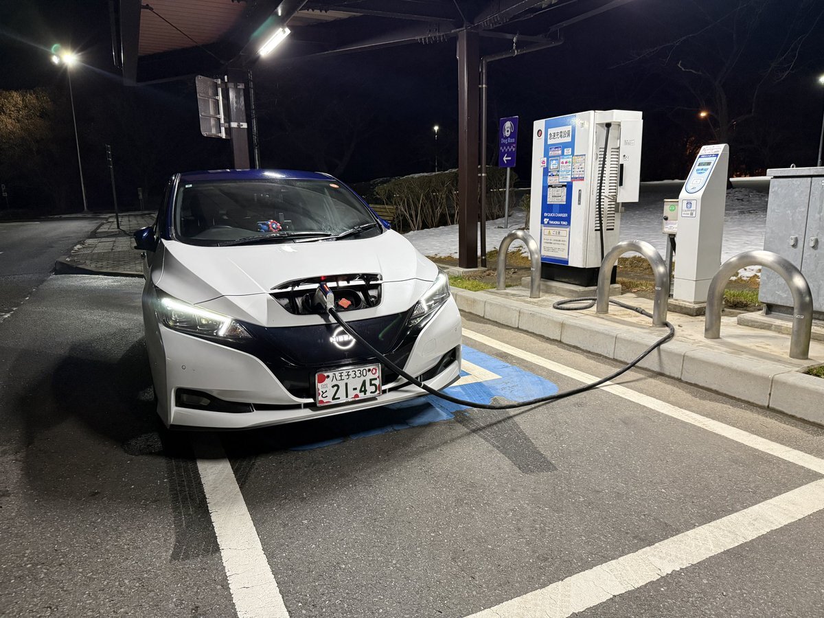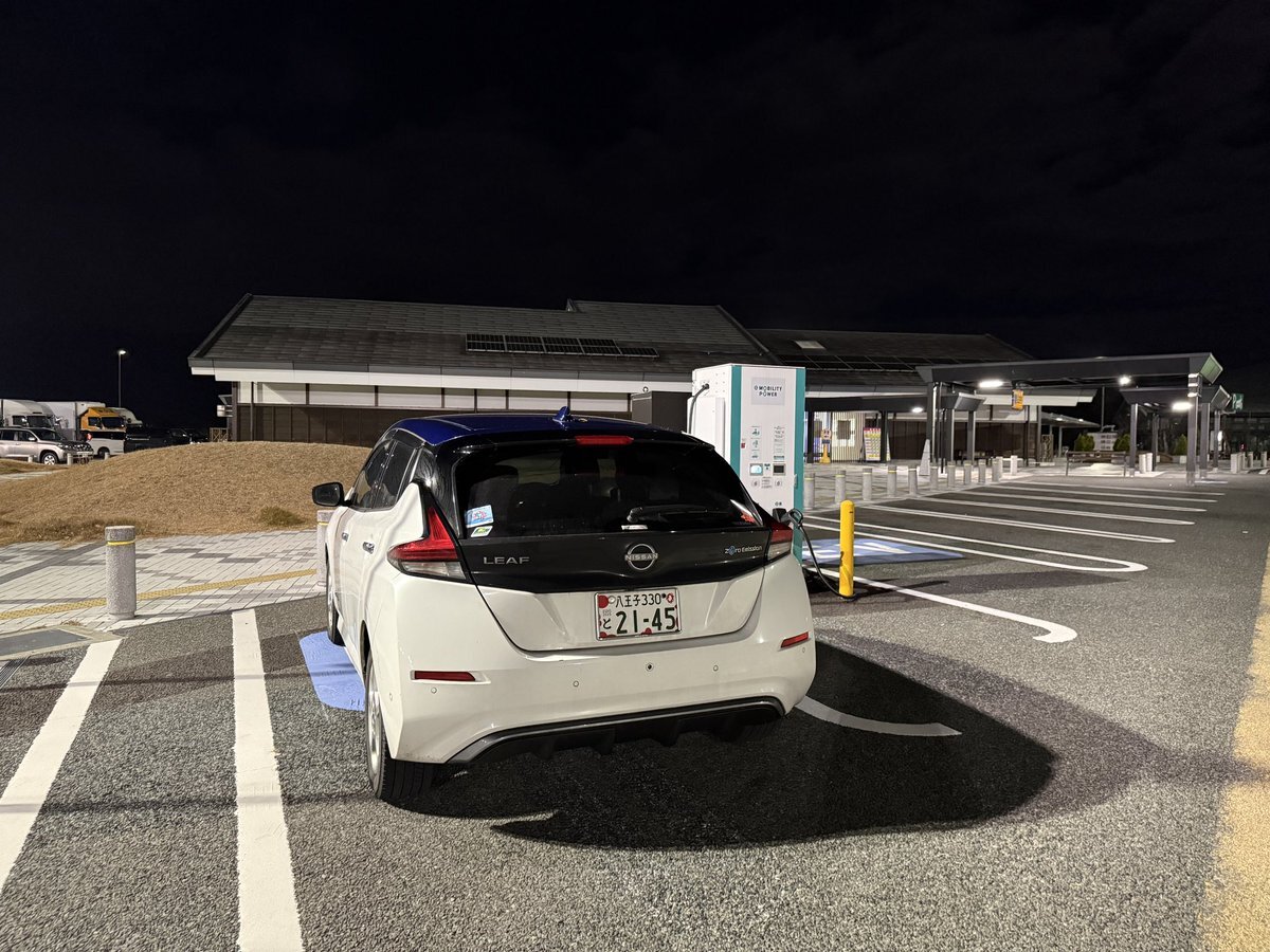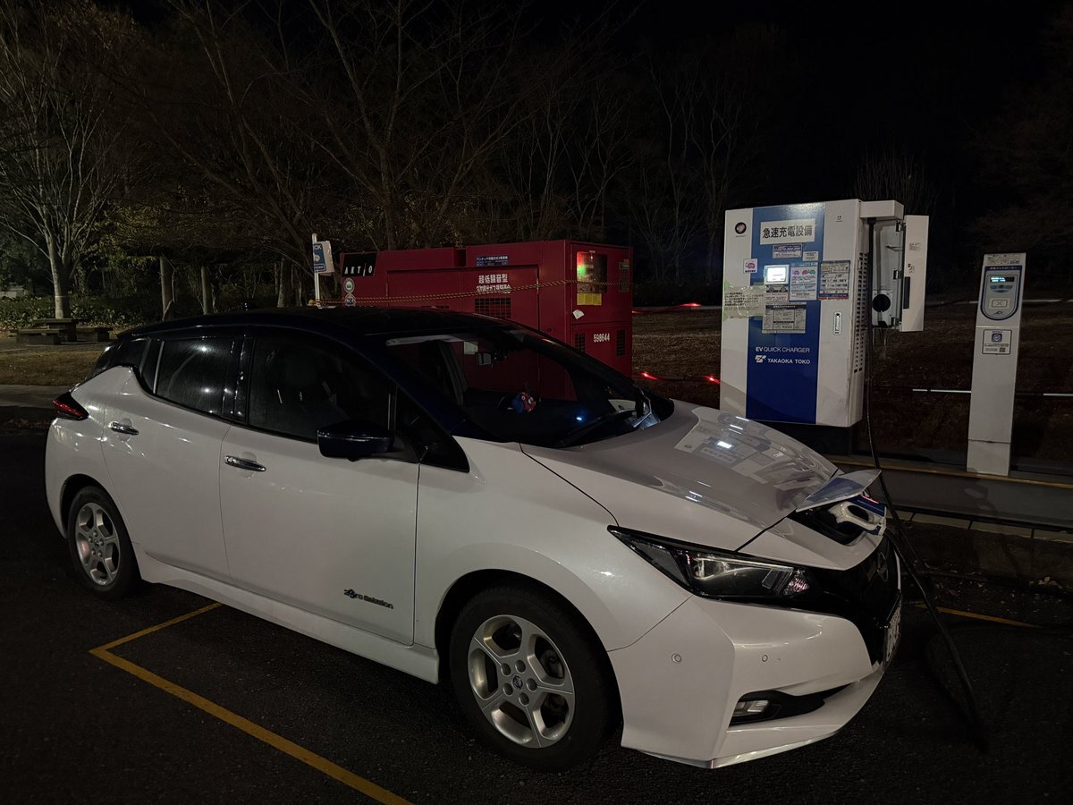 中郷SAで充電! 12月9日から新しい充電器が稼働ということで、古い50kW機は発電機で稼働させてるという…😅 唸るエンジン音!少しだけにしよう💦 129.9km@5.4km/kWh 20%→ 7:02 5.0kWh #leafnow #日産リーフ #NissanLeaf ▼ I'm at 中郷SA (上り) in 北茨城市, 茨城県 app.foursquare.com/share/checkin/… pic.x.com/GvOaS3vECn