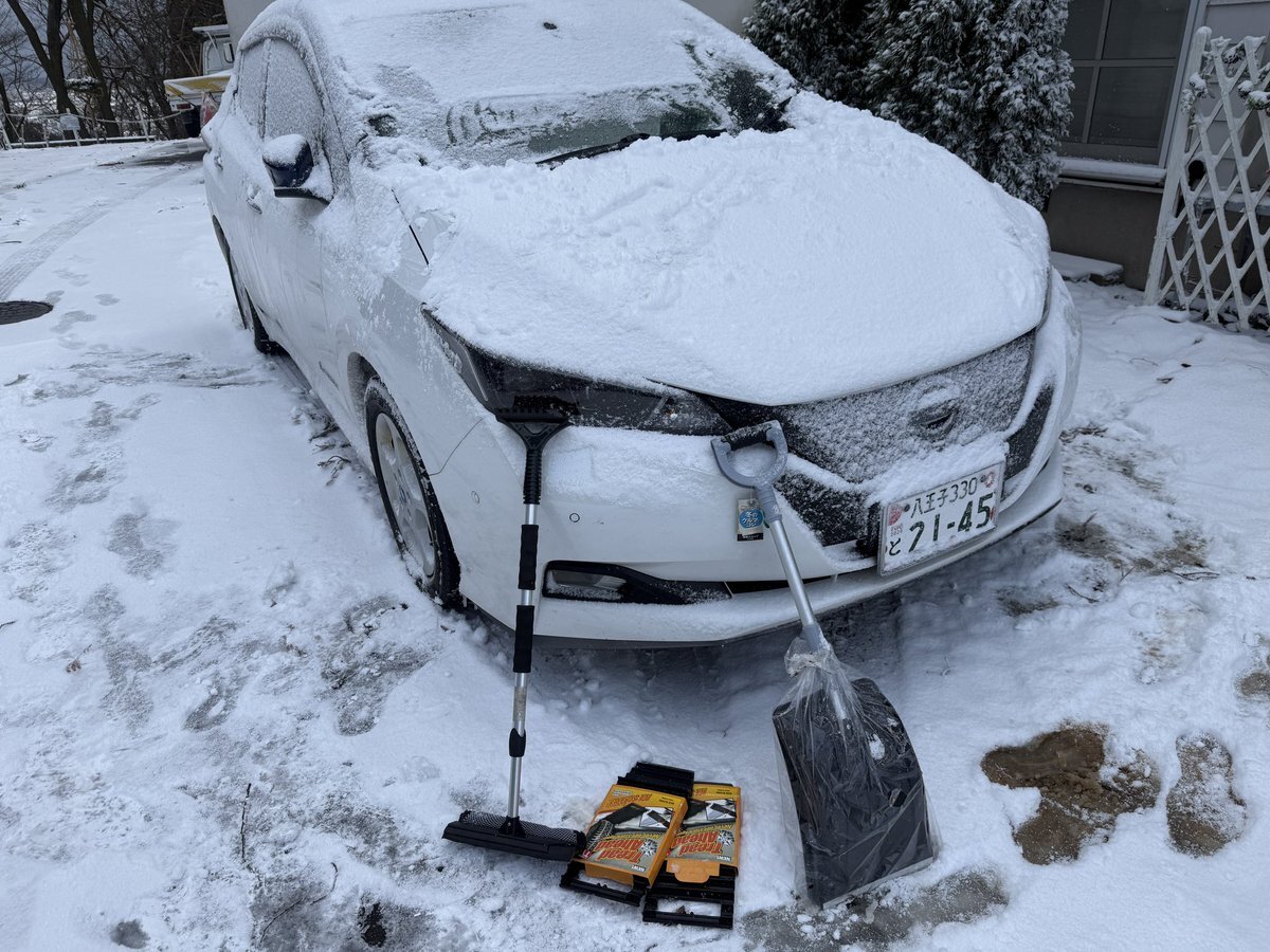 冬がはじまるよ。 遅ればせながら、冬の必需品、冬用ワイパーに交換して、スノーブラシも出してきた! ついでに冬のお守り、脱出板とスコップも積んでおく。(買ってからまだ使ってないヤツ😁️) #秋田市 #秋田 #leafnow #日産リーフ #NissanLeaf pic.x.com/58T81seWUh