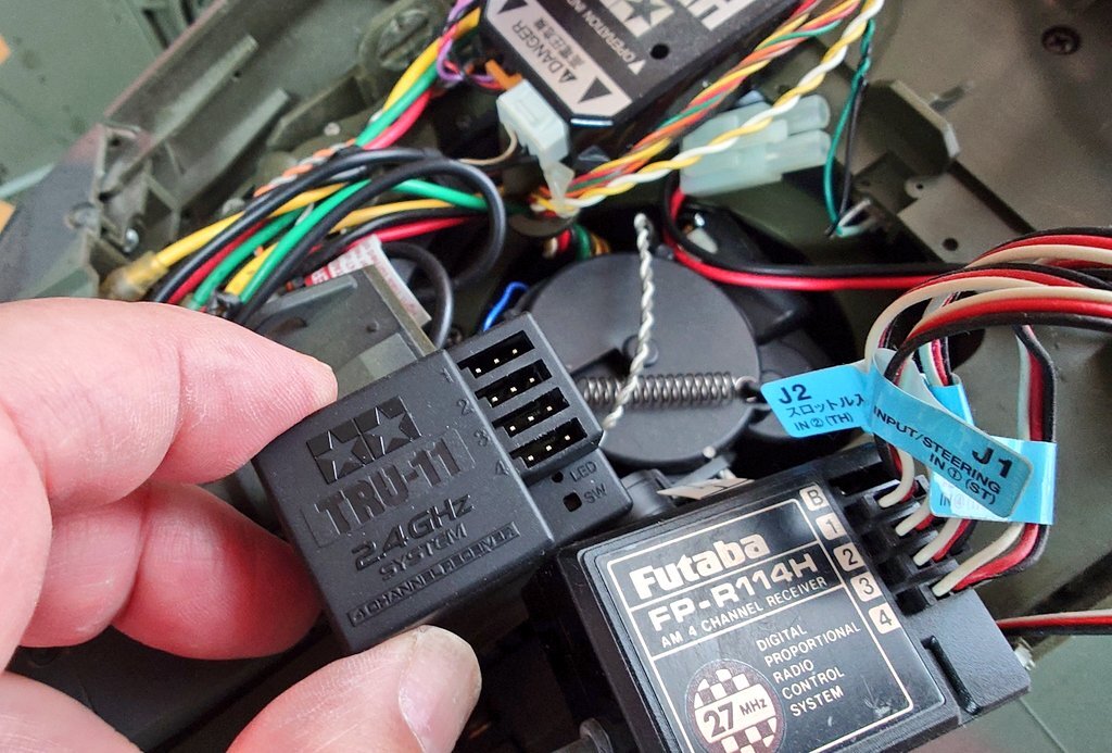 J.T.O.2-A6-002(嘘) 送/受信機 プロポの交換を行い、時代に遅れを取らない様にする。 FINESPEC 2.4G 送信機 P/N TTU-11 受信機 P/N TRU-11 STOCK N/O 17304068 各 EA1 デジタル化に依り 単3電池 8⇒4 本と 省電力化、アンテナが 省略される。 #タミヤ #LEOPARD pic.x.com/IDaYcODYLe
