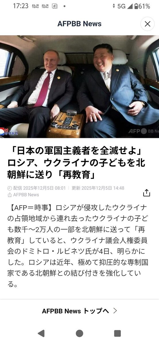 #linecamera 「日本の軍国主義者を全滅せよ」ロシア、ウクライナの子どもを北朝鮮に送り「再教育」(AFPBB News) u.lin.ee/Y8j5ySr?mediad… pic.x.com/egChgo8b8p