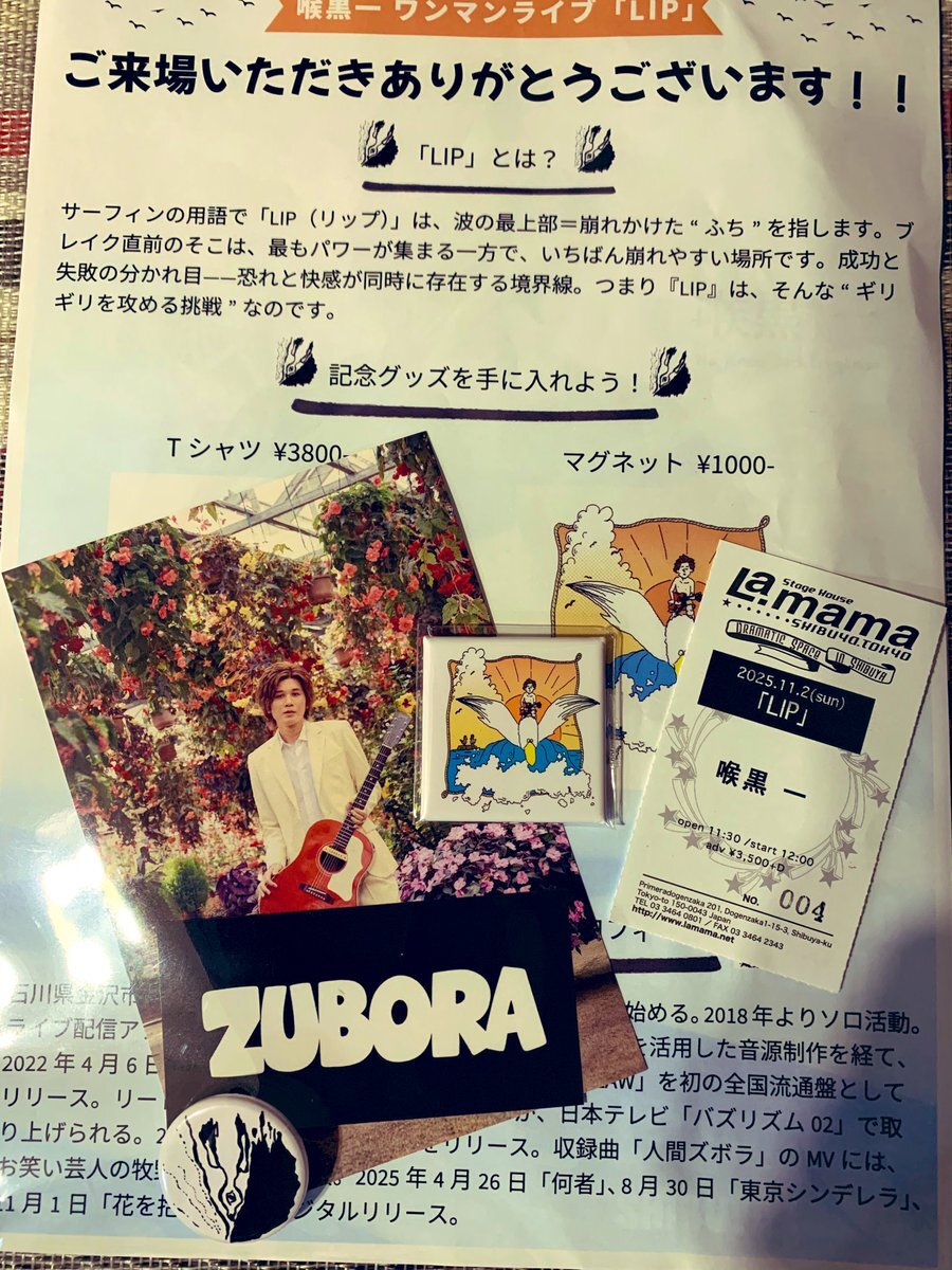 #喉黒一ワンマンライブ#LIP」おめでとう🌊🥂🎊今年の衣装はオフホワイトのブルゾンにバンダナ!靴も白!まっさらな新曲2曲もやってくれてビックリ!そしてトムさんのピアノでハンドマイクで歌う姿も久しぶりに見た...いや〜盛り上がりましたねぇ🐟ピッチピチ✨ #渋谷ラママ #喉黒一 pic.x.com/MNCBqoDBXD