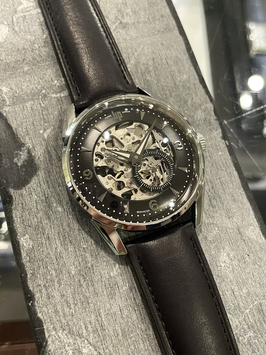 おはようございます😎 #LIP 🇫🇷 スモセコの円は決して小さくないのに、スケルトンとのバランスが良い上に、4時と5時の間に配置されているところも絶妙! 黒とムーブメントのシルバーカラーのコントラストが最高にカッコいいです★ #名古屋 #名古屋駅 #リップ pic.x.com/uq5N8NdOQ4