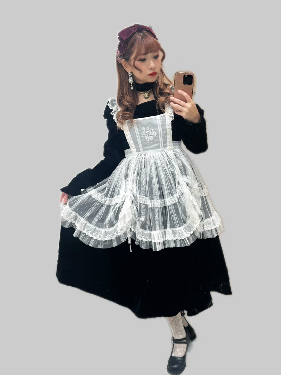 アリプロリリイベ参戦コーデ🌹 アリカさんに褒めてもらえて嬉しかった…😭❤️ 違う頭物の予定が、当日届いたカチューシャを我慢できずに着けました🫶🏻 Headband:@aed_devi Dress: Chalmiere Apron:Alice girl Choker:Innocent World Shoes:YOSUKE #lolita #lolitafashon #ロリータ #ロリィタ pic.x.com/uMCjevjPWZ