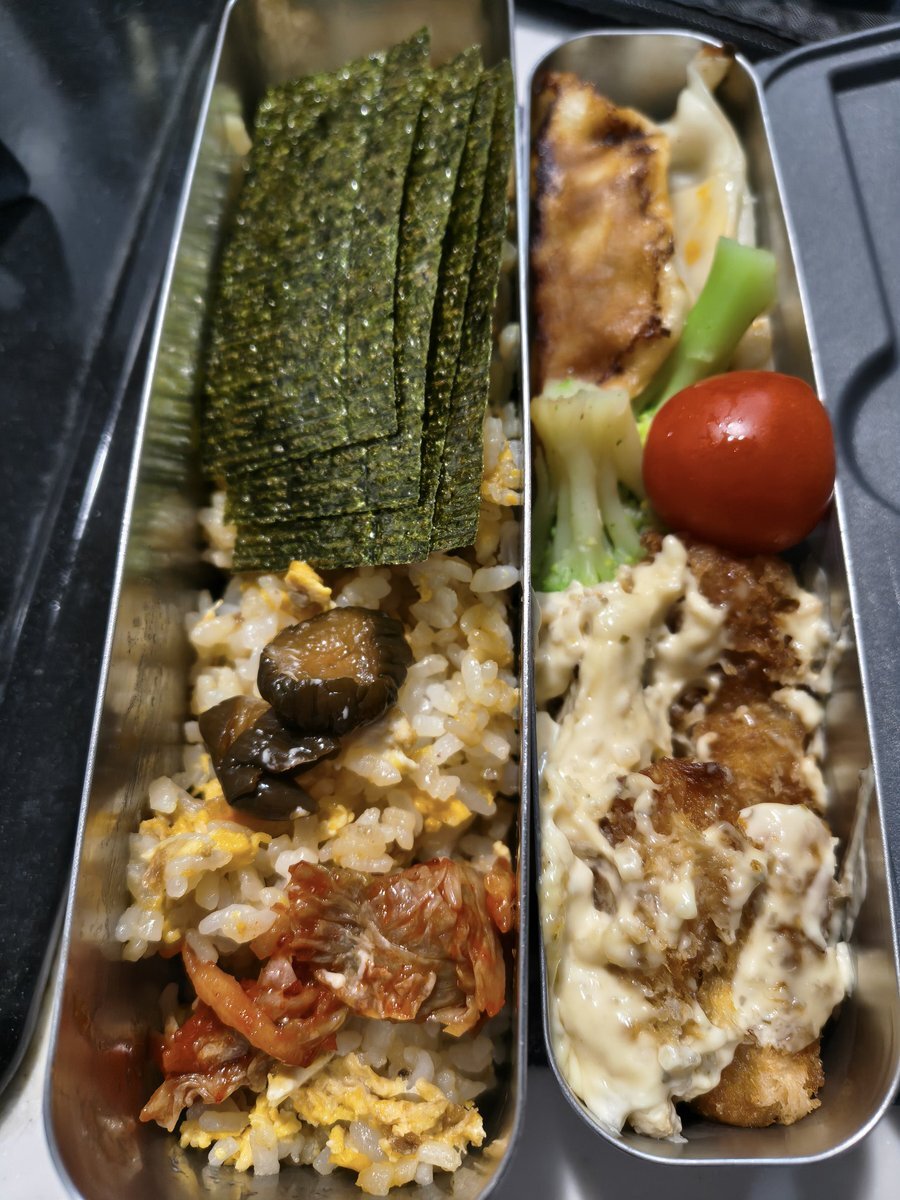 先日相方が煮込みハンバーグ作ってくれた際に弁当用ミニサイズも拵えてくれてたので、今日はありがたくハンバーグ弁当にさせてもらいました🍱 こういう気遣いホンマありがたい(T∀T) #突撃となりの狛ごはん #弁当 #lunch #cooking #ryouri #gohan pic.x.com/r03x7Z0D9K