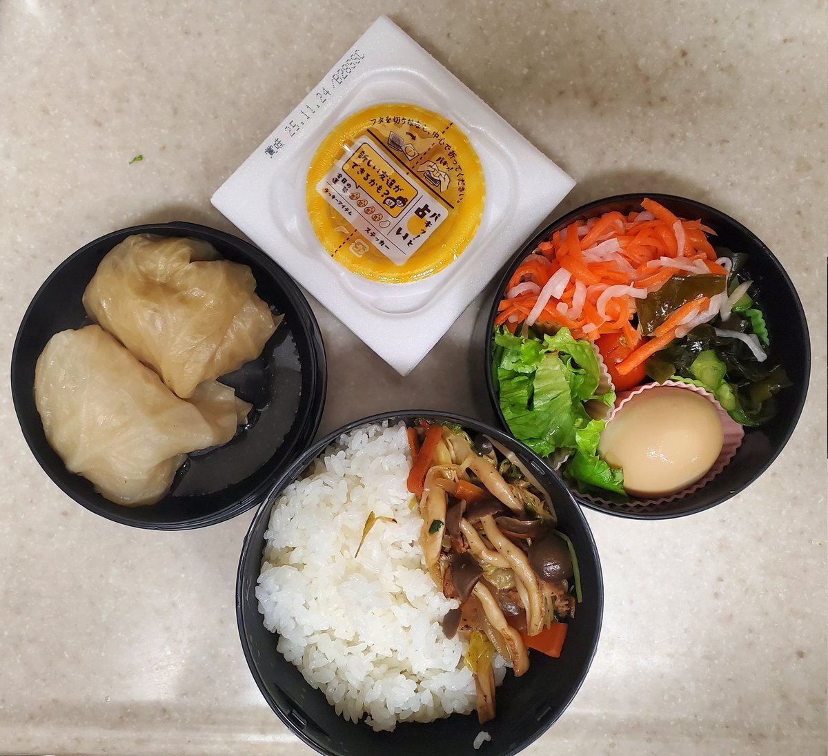 ロールキャベツ 納豆(笑) なます キノコ野菜炒め ストレッチ 忘れました ーーーkg #昼メシ #お弁当 #lunch #almoço #残り物 #手抜き #レコーディングなんちゃら pic.x.com/xW06SJ92RK x.com/shabshablove/s…