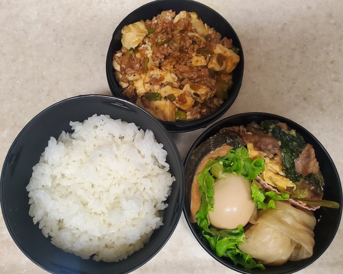 麻婆豆腐 ロールキャベツ 煮玉子 牛肉とニラ ストレッチ 四つん這い 83.6kg #昼メシ #お弁当 #lunch #almoço #残り物 #手抜き #レコーディングなんちゃら pic.x.com/25QIXVsnGu x.com/shabshablove/s…