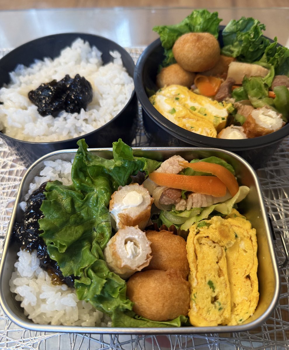 淡色弁当。 玉子焼き(甘)、鶏むねオイスターソース煮、キャベツラー油ゴマ和え #映えない弁当 #妻のための夫による弁当 #bento #lunchbox instagram.com/p/DSTPThmk86t/…