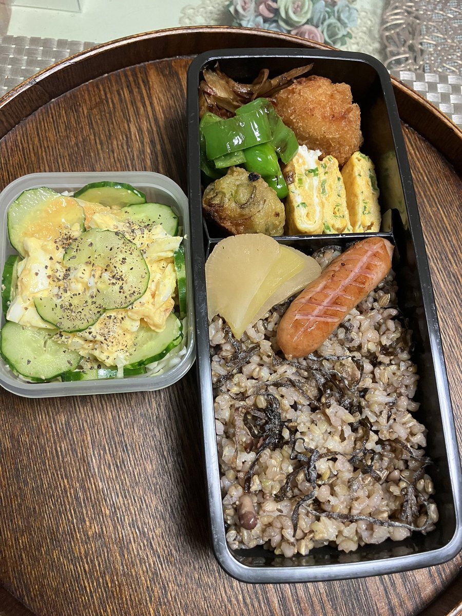 おはようございます😊 good morning😌 53歳オヤジ lunch boxes for D&S 🎊601/600🍱㊗️ DONE🍳 今年のお弁当日記もそろそろ終わり 今年は600食👏 自分の頑張りを褒めてあげよう😌 頑張った🤣 today’s menu 鳥唐揚ネギポン🐔 ウインナー🍖 🥔コロッケ きゅうり胡麻和え🥒 #お弁当記録 #lunchbox pic.x.com/oFBX36rg5X