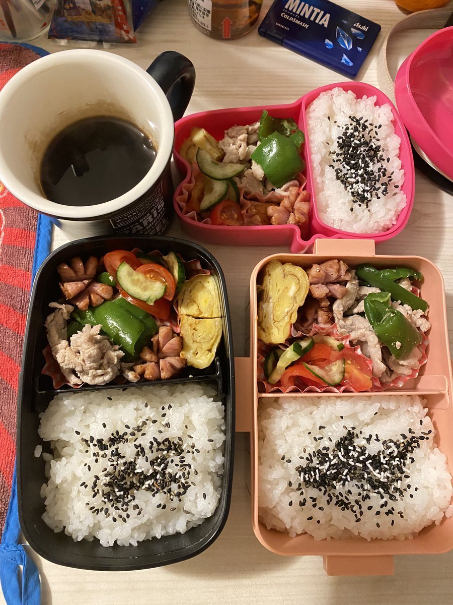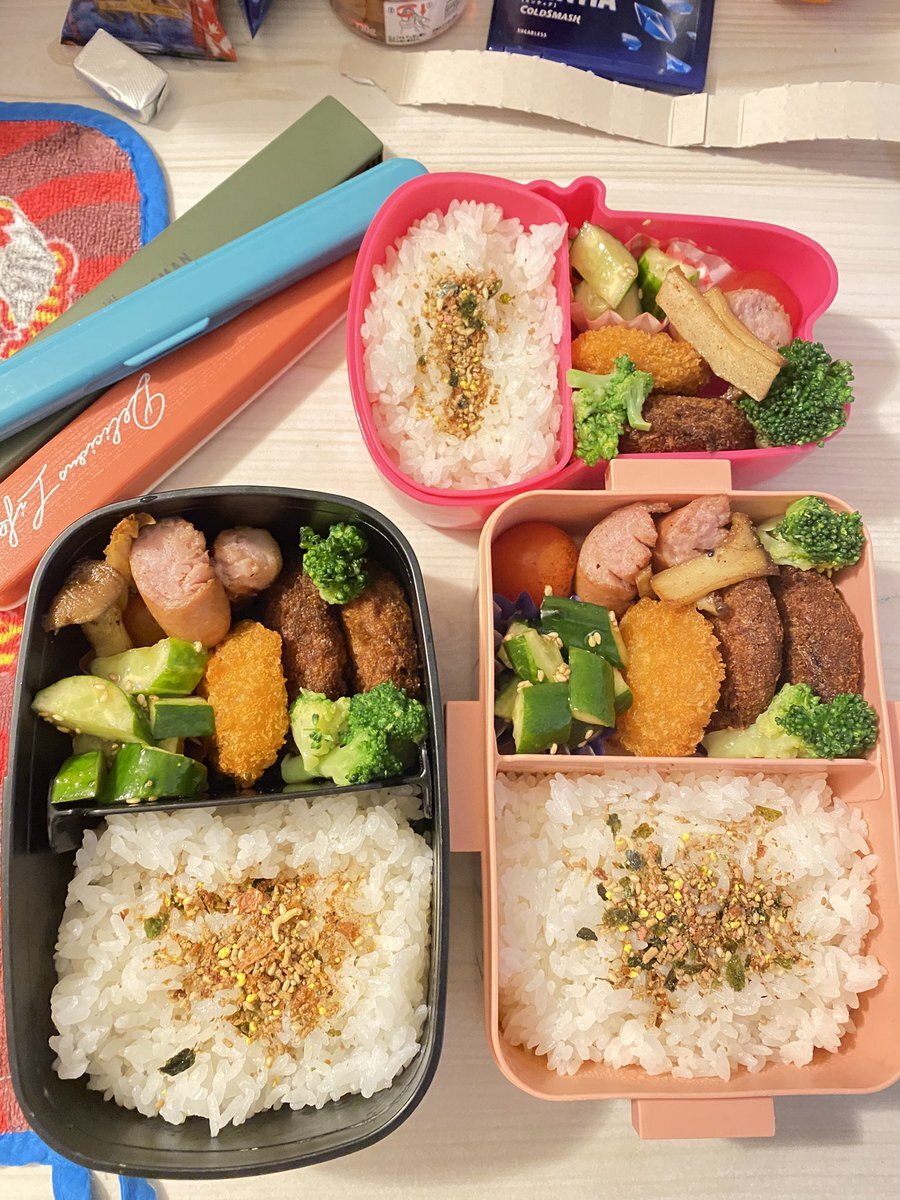 おはようございます😊 good morning😌 53歳オヤジ lunch boxes for D&S&W 590/600🍱 DONE🍳 This morning,preparing curry ingredients to store in the freezer too🍛 today’s menu 卵焼🥚 🐷ピーマンと豚肉中華炒め🫑 タコさんウインナ🐙 🍅きゅうりトマトサラダ🥗 #お弁当記録 #lunchbox pic.x.com/KzlpSv9Bya