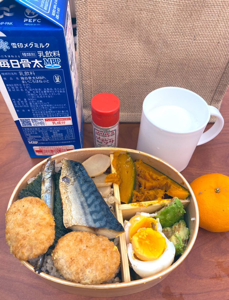 年末火曜日昼がきた🌥 お弁当いただきます🙏 今日も好物の塩サバ、ししゃも等🐟 ユズの代わり⁈に皮をお風呂に入れたポンカン🍊 1日遅いけど、カボチャも冬至関係🎃 ドリンクは牛乳🥛🐮🦴 #牛乳でスマイルプロジェクト #冬休みも牛乳を飲もう #毎日乳製品 #酪農応援 #お弁当 #お弁当記録 #lunchbox pic.x.com/NInYFr2yuO
