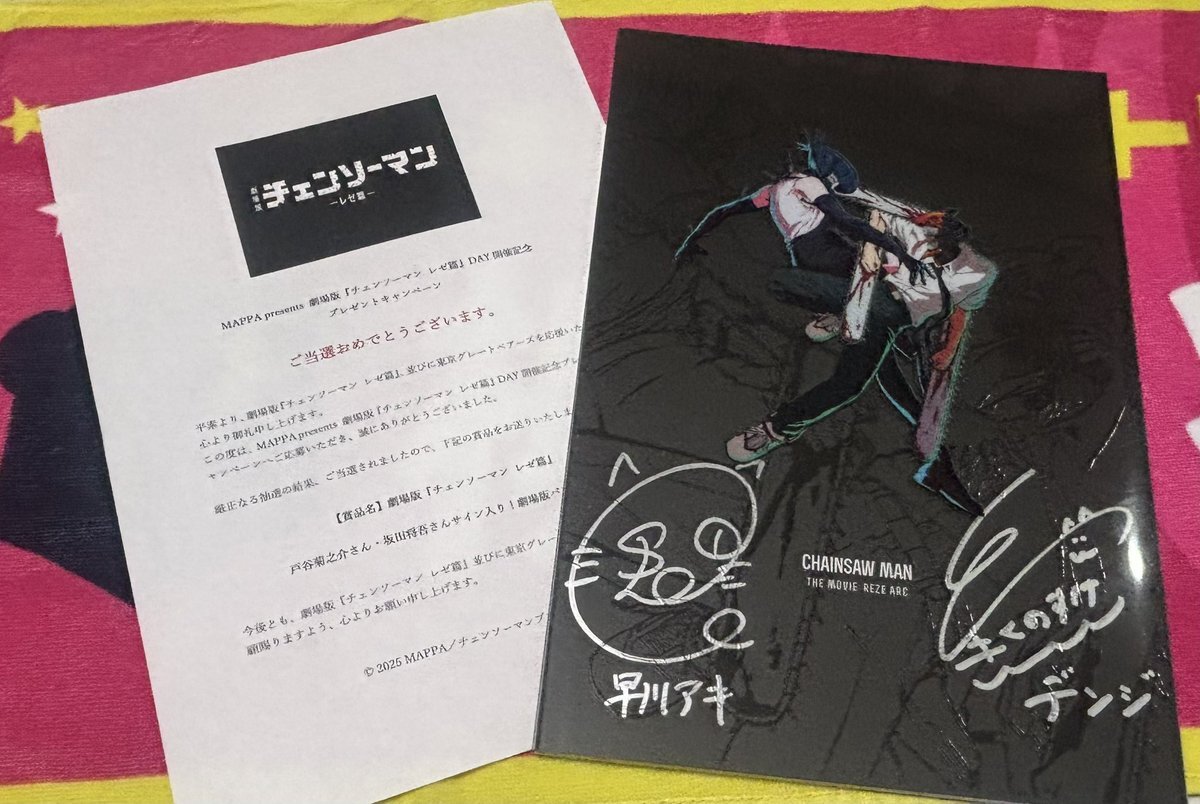 MAPPAのマッチデーのキャンペーンでチェンソーマンレゼ篇のパンフレット当選しました✨️ サイン可愛い!ありがとうございます😊 当日会場に行ってたので嬉しい! 映画100億円突破目前!また観に行きます🎥 グレベアのホームゲームもまた観に行きます🏐 #東京グレートベアーズ #MAPPA pic.x.com/Dq5nr3ztSE